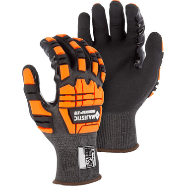 The Majestic Glove X-10 combines advanced protection with everyday comfort for demanding work environments. Featuring 18-gauge Korplex® cut-resistant technology and impact-resistant TPR back-of-hand protection, these gloves deliver ANSI A4 cut resistance and Level 2 impact protection. The premium breathable foam nitrile palm coating provides exceptional grip and dexterity without sacrificing durability. Latex-free construction with improved stretch eliminates irritant fibers, while the seamless knit design, pre-curved fingers, and reinforced thumb crotch reduce fatigue during extended wear. Touch screen capable for smartphone and tablet use. Long knit cuff ensures a secure fit. Meets ANSI/ISEA 105-2024 and EN 388:2016 standards.