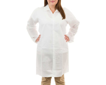 International Enviroguard Style 2246 provides lightweight, breathable SMS lab coat protection with elastic wrists and a clean, no-pocket design. The three-layer SMS fabric helps resist light liquid splashes and provides effective particulate barrier performance in controlled environments.