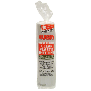 The Husky Low Density Plastic Sheeting is used for many different construction and do-it-yourself projects. This polyethylene film can be used under wood floors, as a barrier against overspray, vapor, moisture and airborne particles, for equipment cover, protection between drywall and insulation, to cover a crawl space, for weed protection in agriculture, to winterize windows, as shielding for curing concrete, and a variety of other DIY projects.