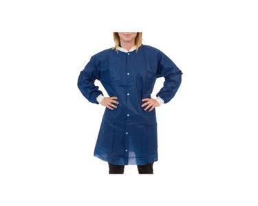 International Enviroguard Style K2047DB delivers lightweight, breathable coverage for use in clean, professional environments. Constructed from durable polypropylene, this dark blue lab coat features knit wrists and a knit collar for a secure, comfortable fit. Designed to reduce contamination risk, it supports compliance in food processing, laboratory, pharmaceutical, and light manufacturing settings.